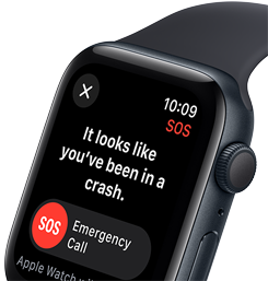 Bij een ernstig auto-ongeluk kan Apple Watch de hulpdiensten inschakelen.◊ Verwijzing naar disclaimers
